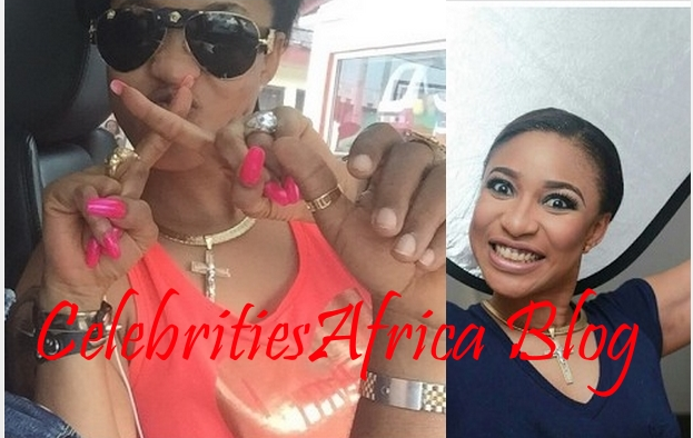 The picture above is popular Nigerian actress Tonto Dikeh..You will all agree with me that Tonto has a good sense of fashion and is not only that but beautiful as well..But i personally find the picture above very awkward. Take a close look at the picture above and tell us what you see..